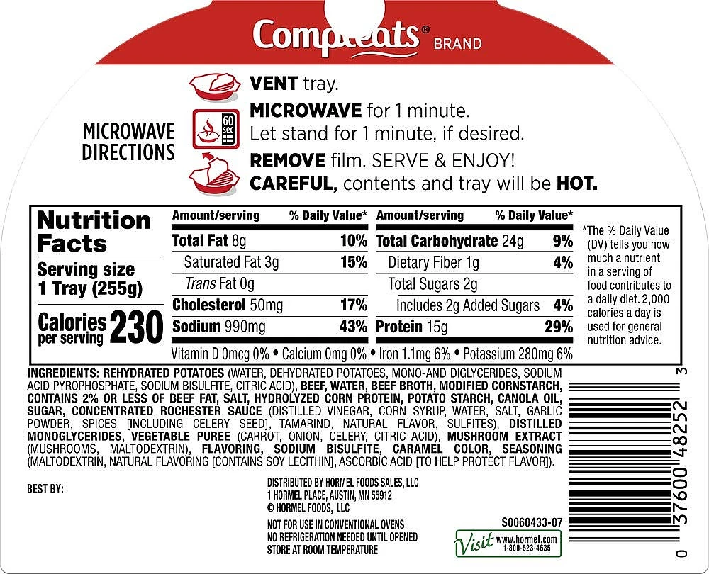 Hormel Compleats Tender Beef With Mashed Potatoes And Gravy